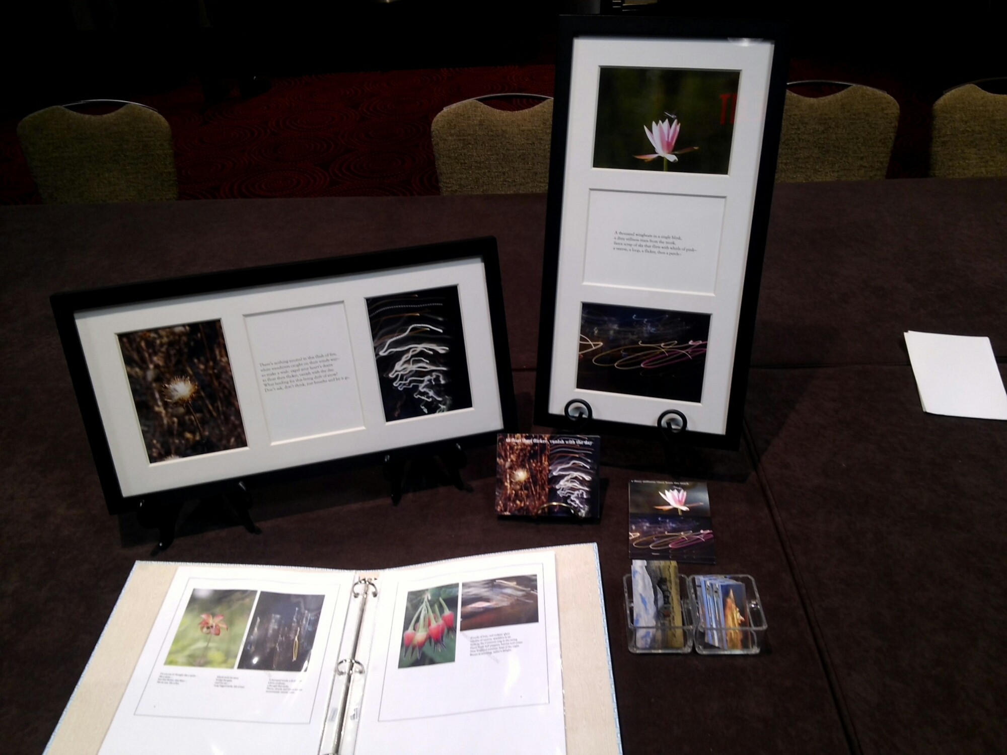 It was a real pleasure to get to see all the creative means of expression people brought with them: everything from a collection of Bond novels to Settlers of Cataan, from knitted handwarmers to a fully authentic 18th century dress and undergarments, from photography to painting to a playlist of radio and exhibition voiceovers. In such an eclectic mix, a pairing of photography and poetry fit right in, and it was fun to toast to the submission process with a painter, to talk haiku cycles with an interactive media designer, and to discuss dramatic diction with a science museum staffer. And, of course, to share Palettes of Light with people, which was really gratifying.
